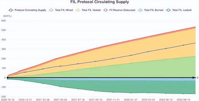 简单来说,铸造,归属,锁定和燃烧有助于流通供应中代币的净流入或流出。下面是自主网推出以来Filecoin代币供应的演变。